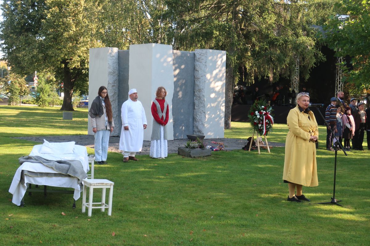 – To na was będzie spoczywał obowiązek pamięci, bo pamięć to świadomość, to tożsamość, to zobowiązanie wobec tych, którzy zginęli, polegli, których tutaj nie ma – mówiła do zgromadzonej przy pomniku młodzieży przewodnicząca sejmiku województwa Elżbieta Piniewska. – Ale ta pamięć to również coś, co można przekuć w dobro, w prawdę i w piękno.