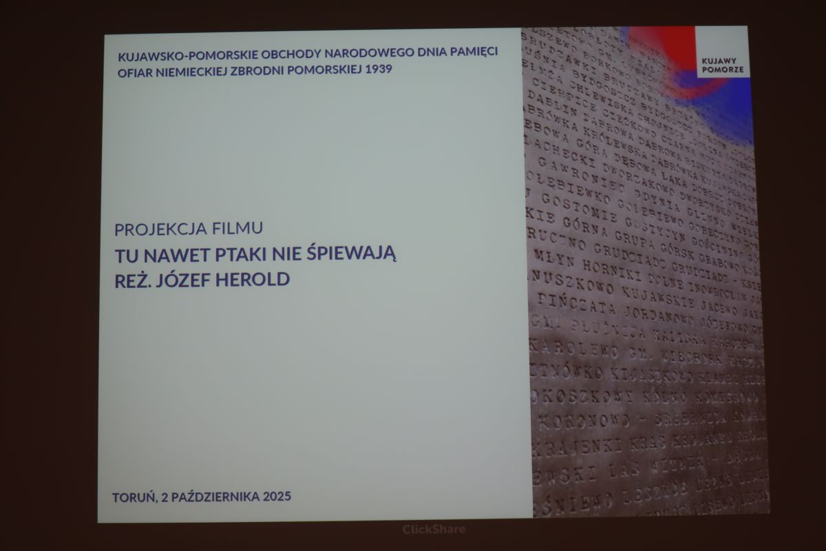 Osiemdziesiąt sześć lat temu w przedwojennym Województwie Pomorskim Niemcy dokonali eksterminacji 30 tysięcy Polaków – robotników, rolników, nauczycieli, inteligencji, duchownych i osób z zaburzeniami psychicznymi. Pomnik Pamięci Ofiar Zbrodni Pomorskiej w Toruniu jest szczególnym symbolicznym miejscem upamiętniającym wszystkie ofiary zagłady. W Narodowym Dniu Pamięci Ofiar Niemieckiej Zbrodni Pomorskiej 1939 (przypadającym każdego roku w dniu 2 października), hołd pomordowanym oddali marszałek Piotr Całbecki, przewodnicząca sejmiku województwa Elżbieta Piniewska, wicemarszałek Zbigniew Ostrowski i radny województwa Tadeusz Pogoda.