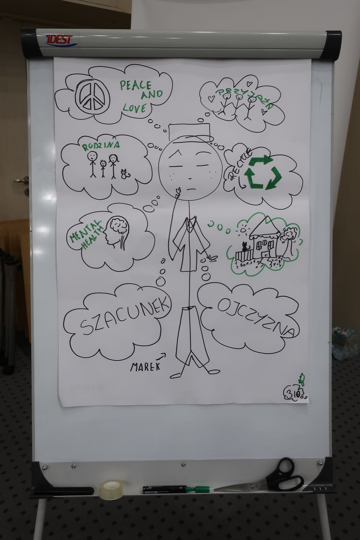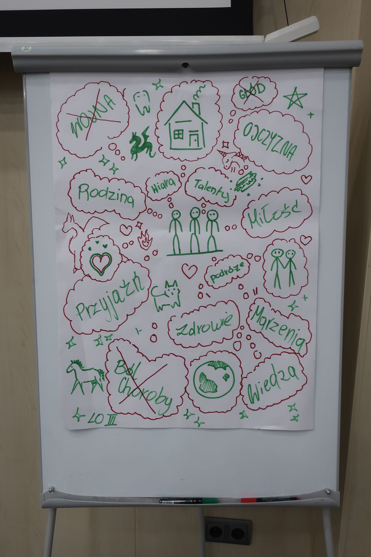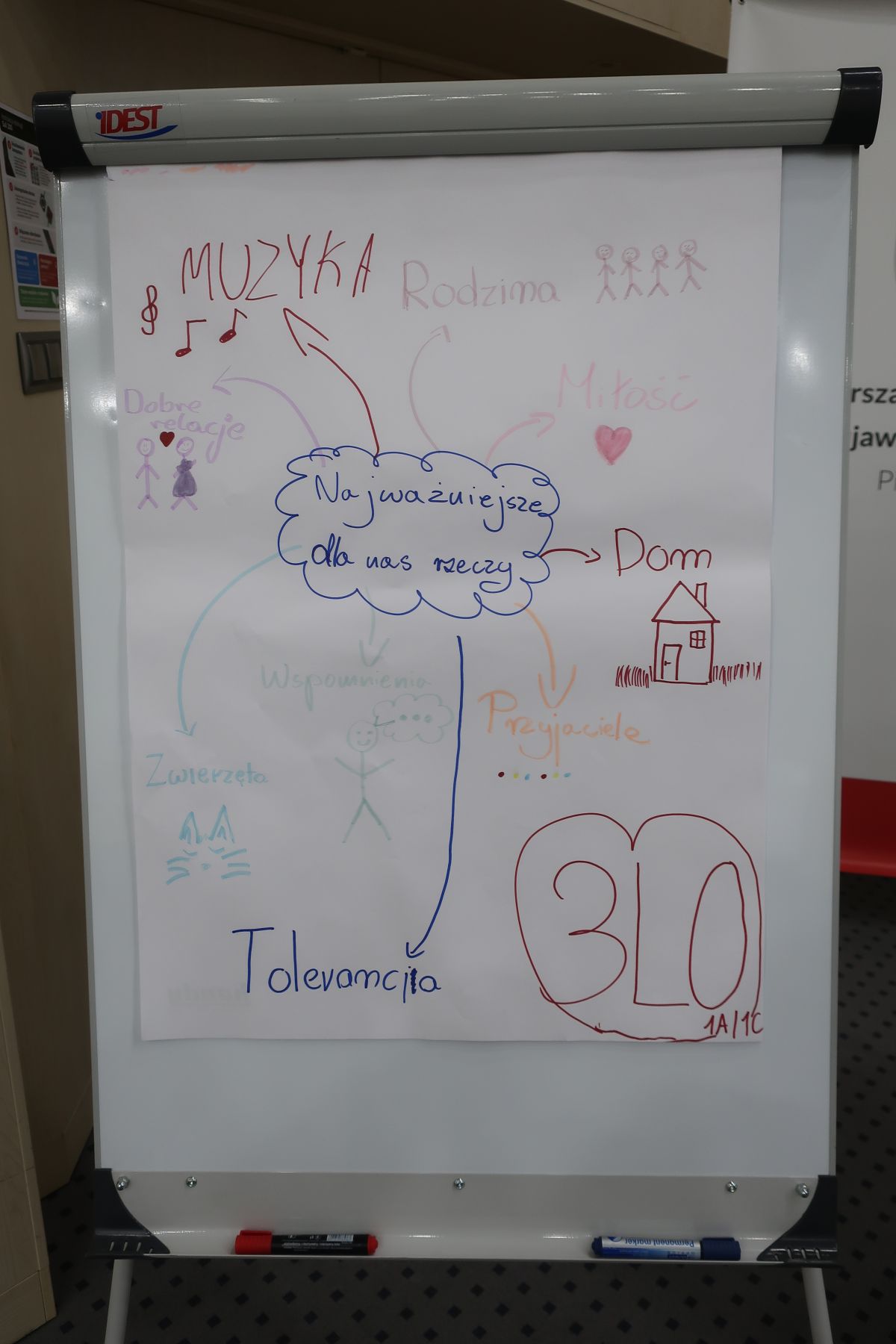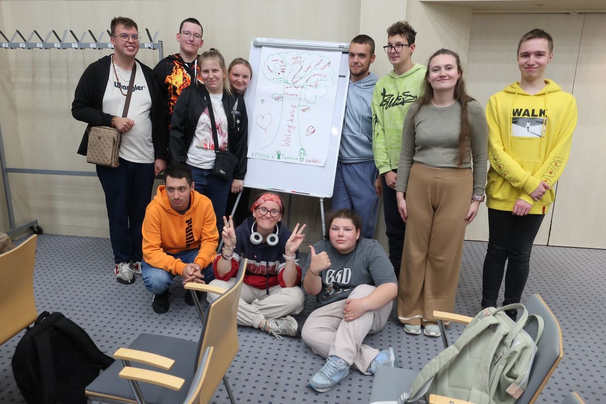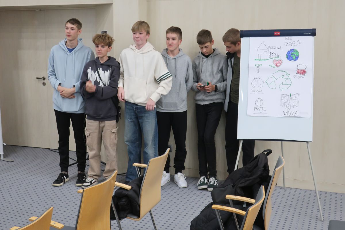 Po zakończeniu panelu dyskusyjnego, młodzież podzielona na grupy, wzięła udział w zajęciach warsztatowych. Na przygotowanych flipchartach w sposób plastyczny uczniowie prezentowali swoje przemyślenia, wrażenia i odczucia na temat tego co zobaczyli, usłyszeli, i tego co jest ich pragnieniem oraz marzeniem związanymz teraźniejszością i nadchodzącą przyszłością.Warsztaty ujawniły dużą wrażliwość młodzieży na różnej natury problemy współczesnego świata, wykazały jej dużą dojrzałość w ocenie samego siebie, jak i otaczającej ją rzeczywistości.
