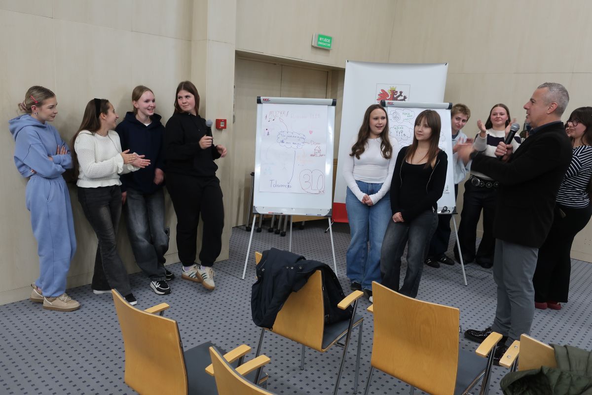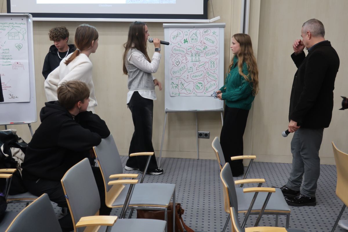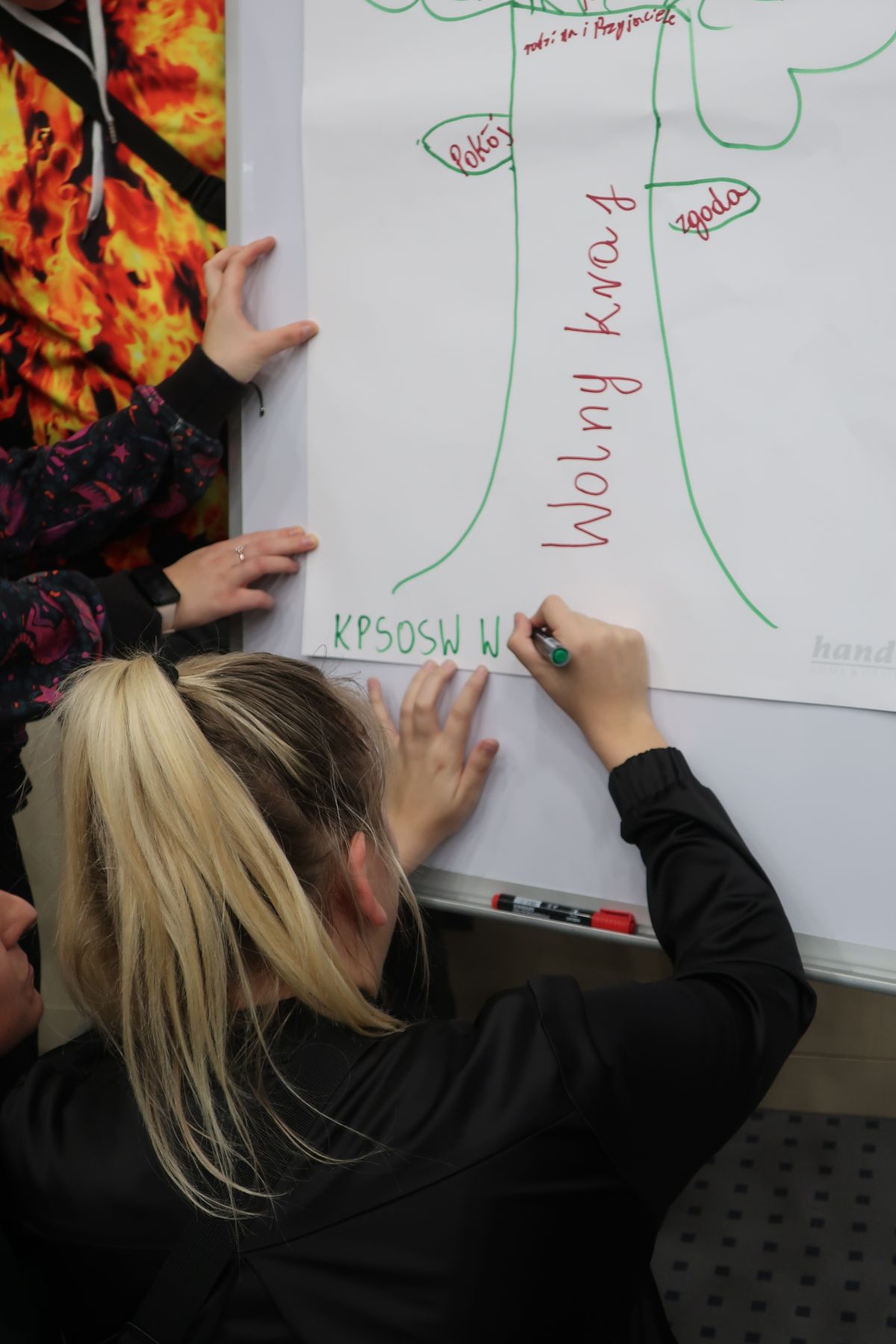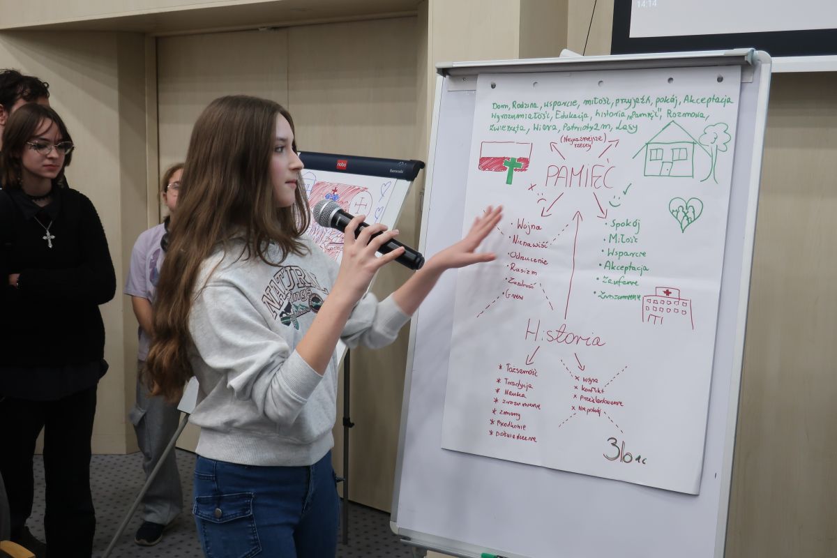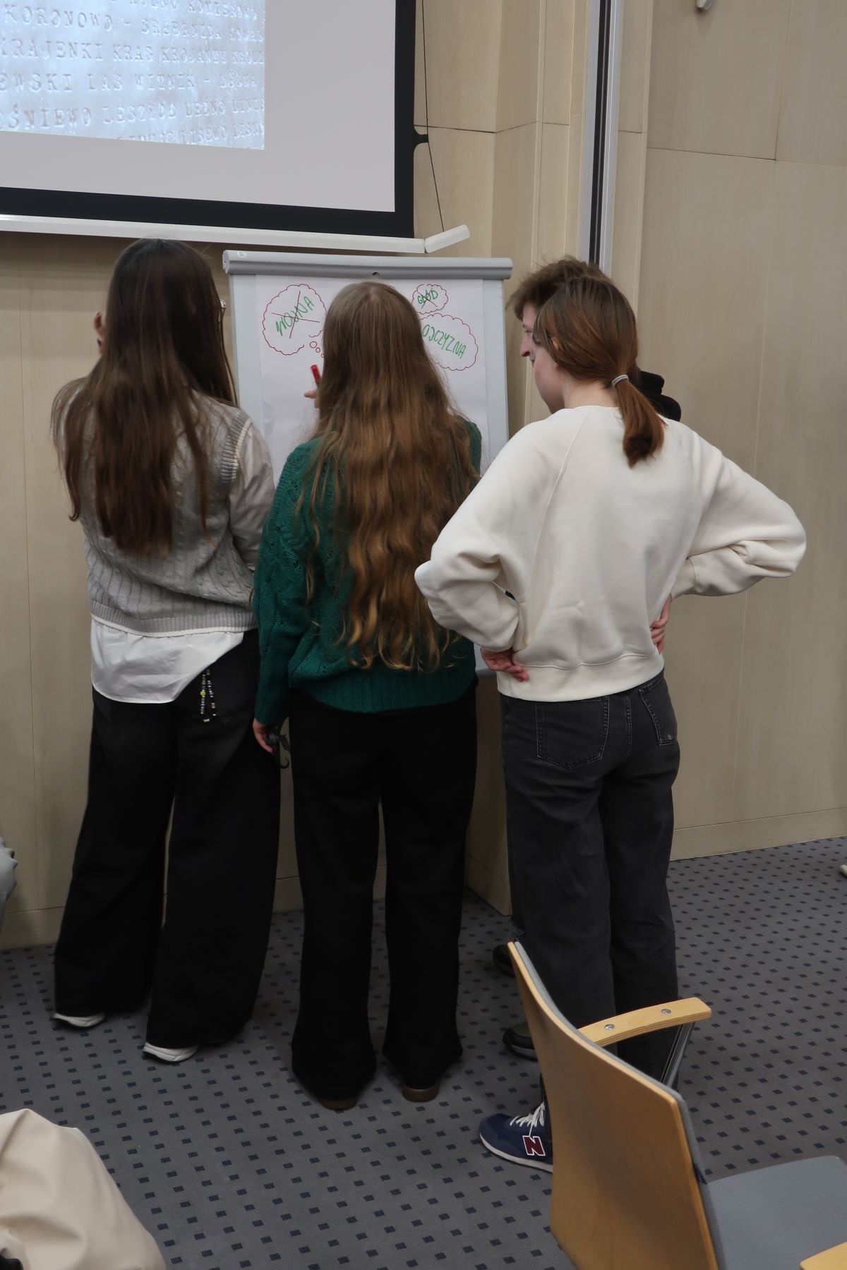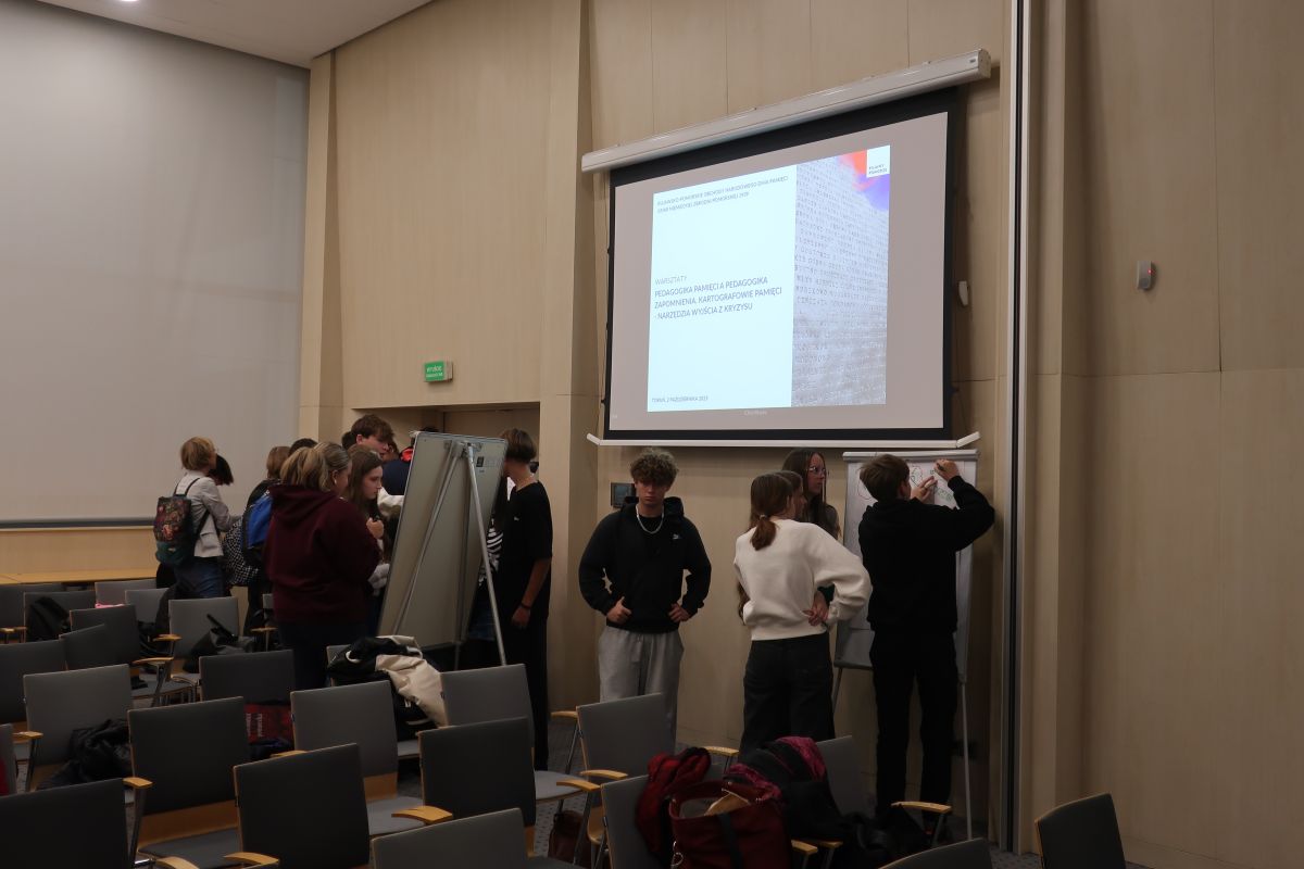 Po zakończeniu panelu dyskusyjnego, młodzież podzielona na grupy, wzięła udział w zajęciach warsztatowych. Na przygotowanych flipchartach w sposób plastyczny uczniowie prezentowali swoje przemyślenia, wrażenia i odczucia na temat tego co zobaczyli, usłyszeli, i tego co jest ich pragnieniem oraz marzeniem związanymz teraźniejszością i nadchodzącą przyszłością.Warsztaty ujawniły dużą wrażliwość młodzieży na różnej natury problemy współczesnego świata, wykazały jej dużą dojrzałość w ocenie samego siebie, jak i otaczającej ją rzeczywistości.