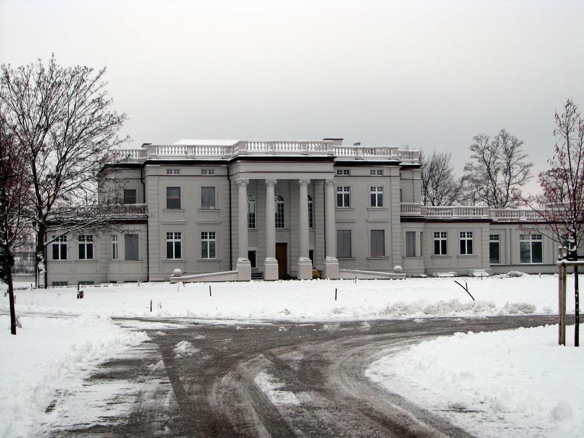 Pałac klasycystyczny z poł. XIXw. Budowla piętrowa, wzniesiona na planie wydłużonego prostokąta. Nad piętrem mezzanin, całość nakryta łagodnym czterospadowym dachem. W fasadzie okazały portyk kolumnowy w wielkim porządku. Do korpusu przylegają parterowe skrzydła, przy czym zachodnie łączy się z obszernym parterowym pawilonem.