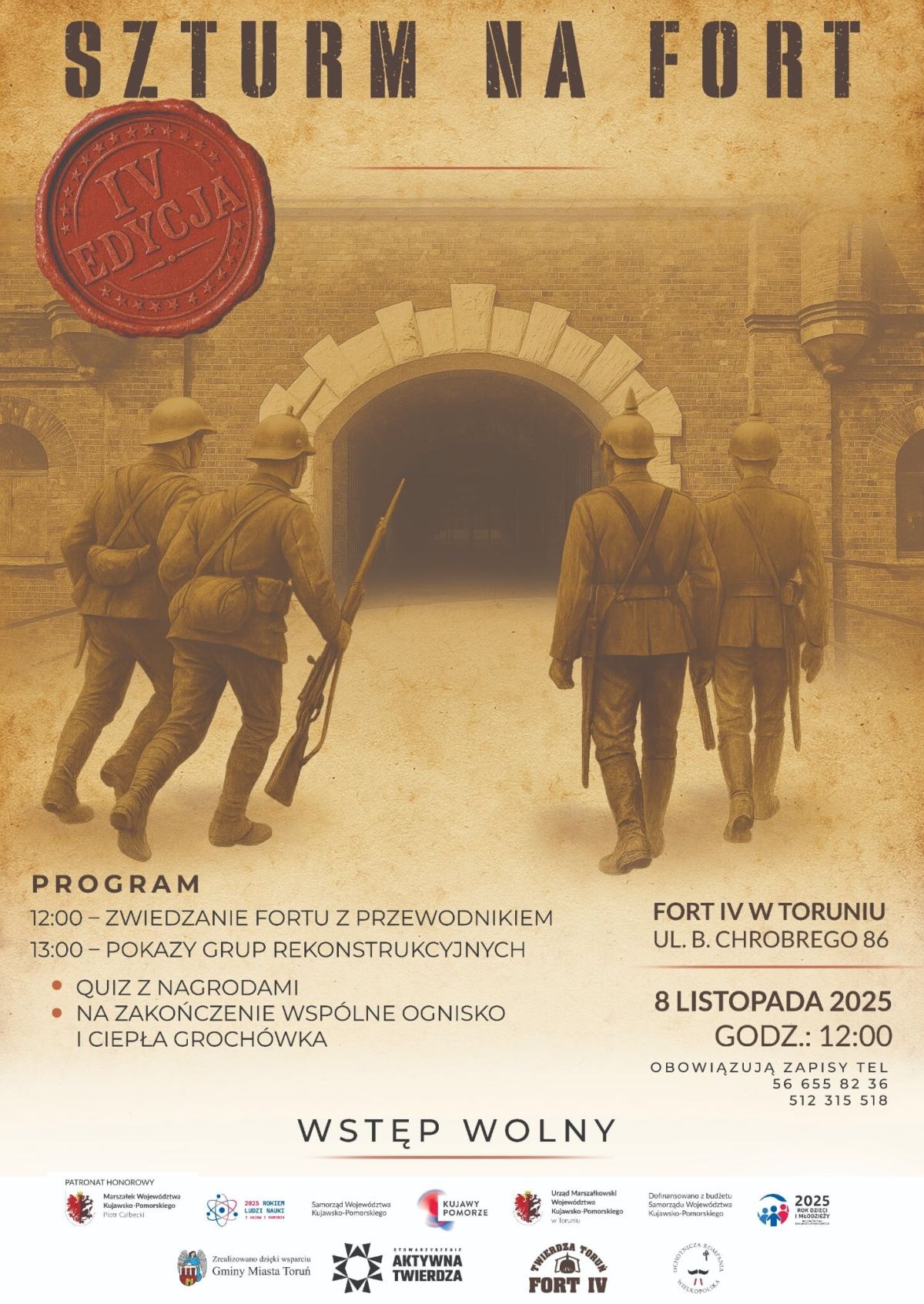 Zaplanowane wydarzenie rozpocznie się w Forcie IV Twierdzy Toruń w najbliższą sobotę 8 listopada 2025 roku, ok. godz. 11:30, w ramach już IV edycji rekonstrukcji „Szturm na fort” oraz „Manewrów cesarskich” (IV Kaisermanöver). W planowanej inscenizacji wezmą udział członkowie grup rekonstrukcji historycznej odtwarzających pruskich żołnierzy z okresu II Rzeszy, polskich powstańców wielkopolskich lub żołnierzy Wojska Polskiego z okresu walk o niepodległość II Rzeczpospolitej i walk o granice z lat 1918 – 1921.