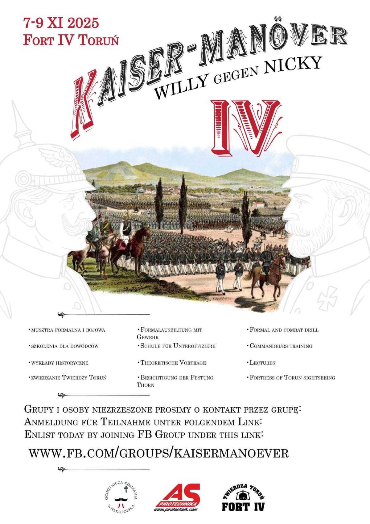 Stowarzyszenie Aktywna Twierdza oraz Fort IV zapraszają na IV edycję inscenizacji „Szturm na fort” oraz „Manewrów cesarskich”, która odbędzie się w dniu 8 listopada 2025 roku.